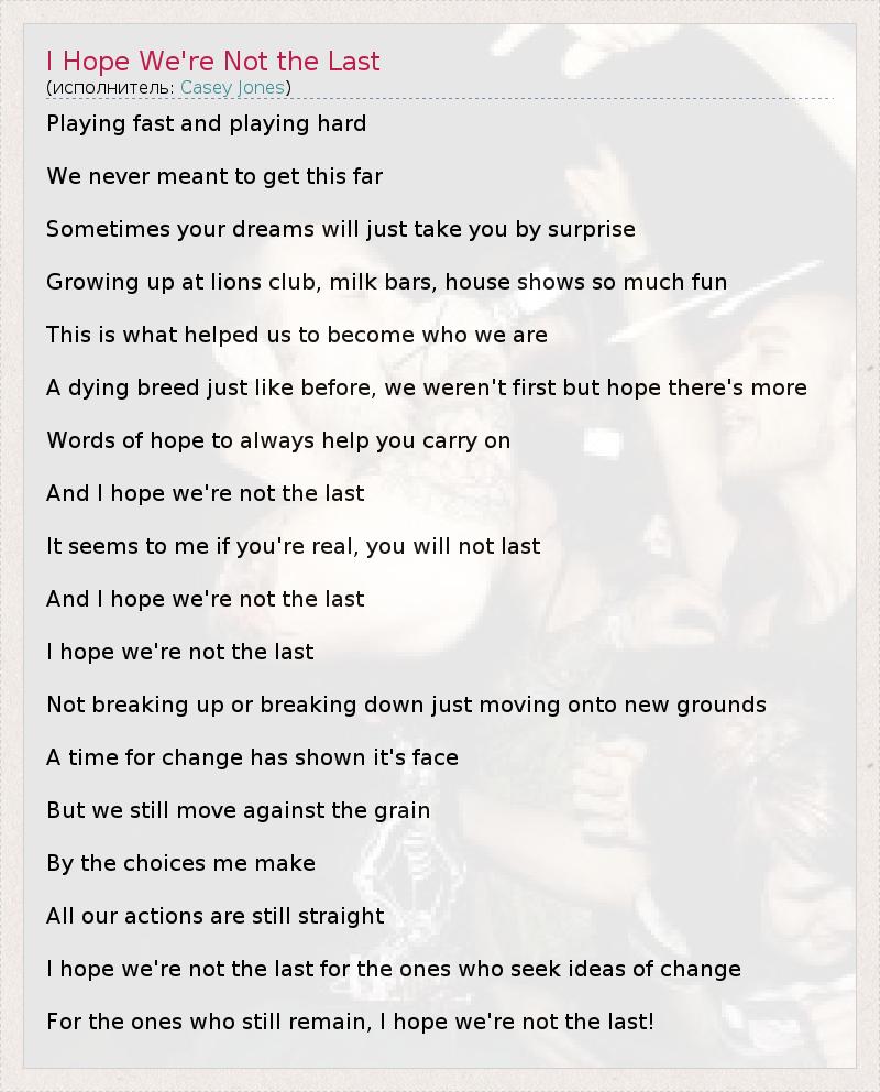 ГлавнаяИсполнителиCasey JonesI Hope We're Not the Last