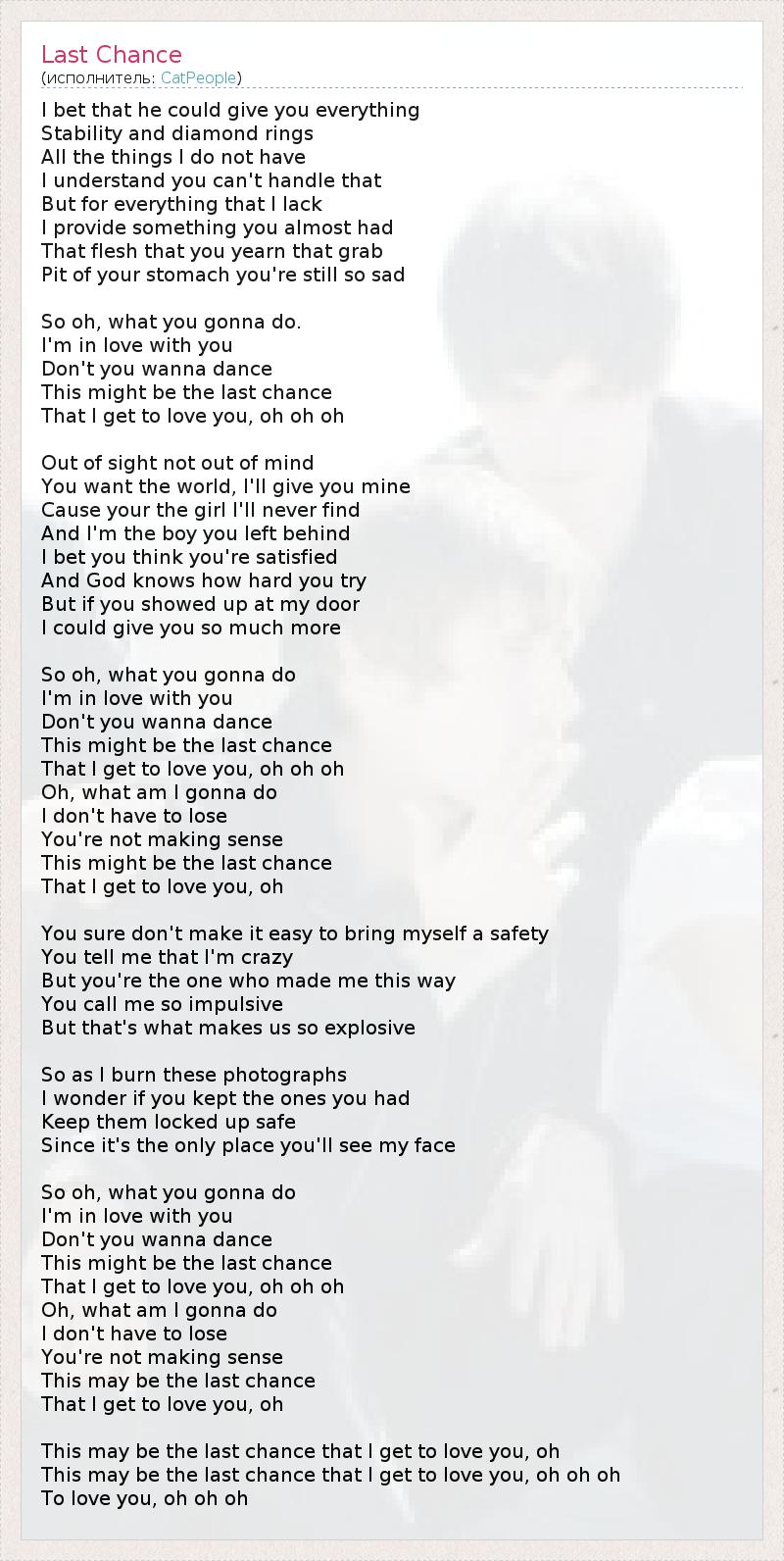 Это может быть последний шанс, данный мне, чтобы любить тебя, о, о, о...
