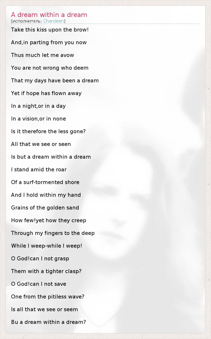 А как ты думаешь, о чем песня "A dream within a dream" ?