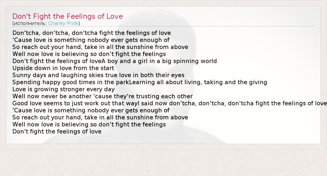 ГлавнаяИсполнителиCharley PrideDon't Fight the Feelings of Love
