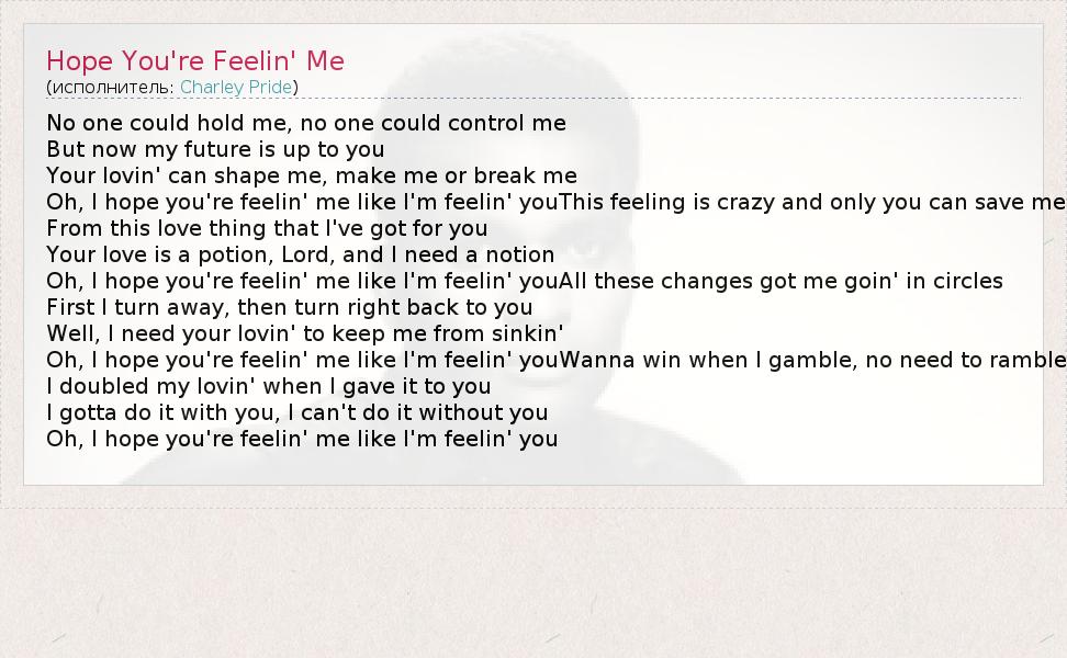 А как ты думаешь, о чем песня "Hope You're Feelin' Me" ?