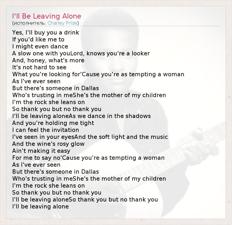 А как ты думаешь, о чем песня "I'll Be Leaving Alone" ?