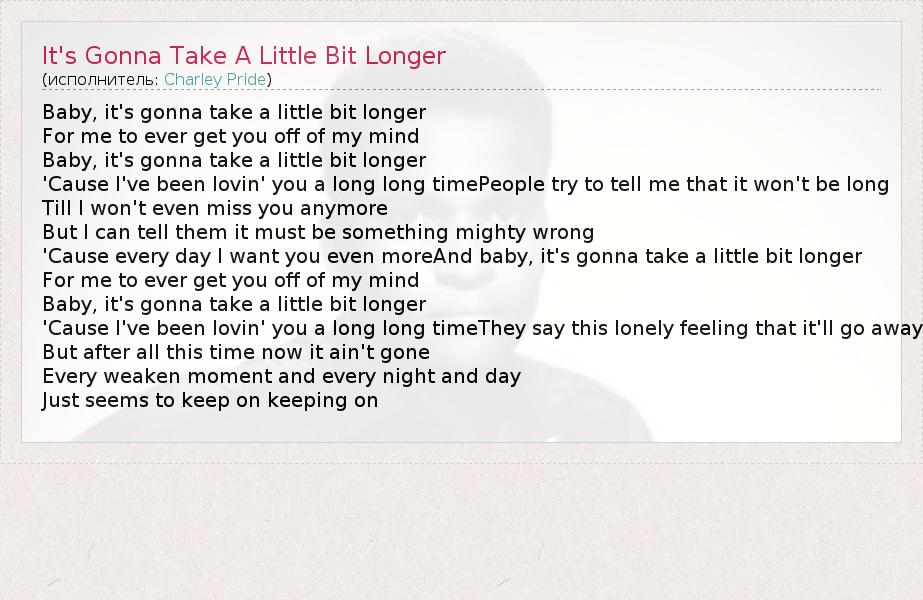 А как ты думаешь, о чем песня "It's Gonna Take A Little Bit Longer" ?