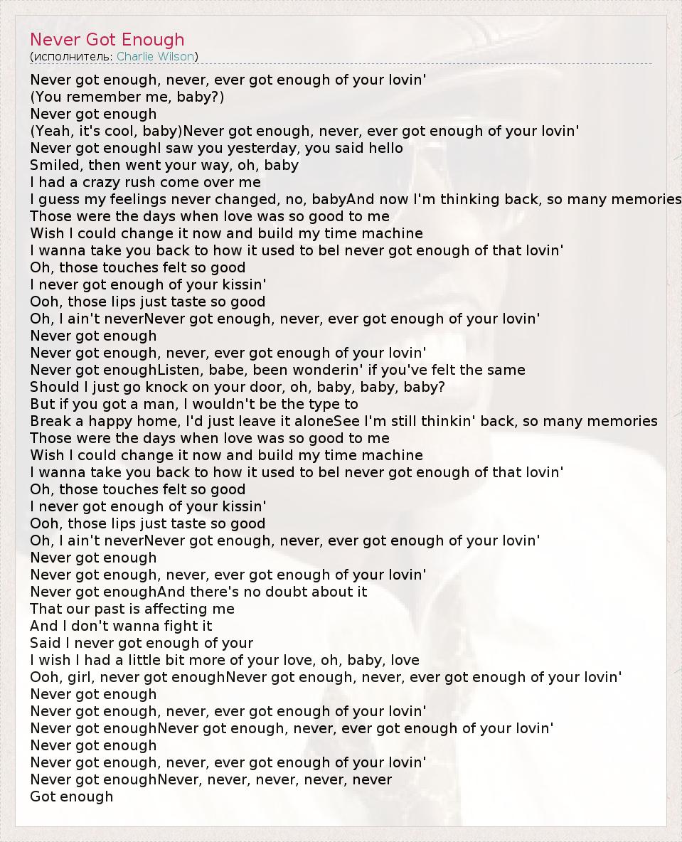 Never got enoughNever got enough, never, ever got enough of your lovin'