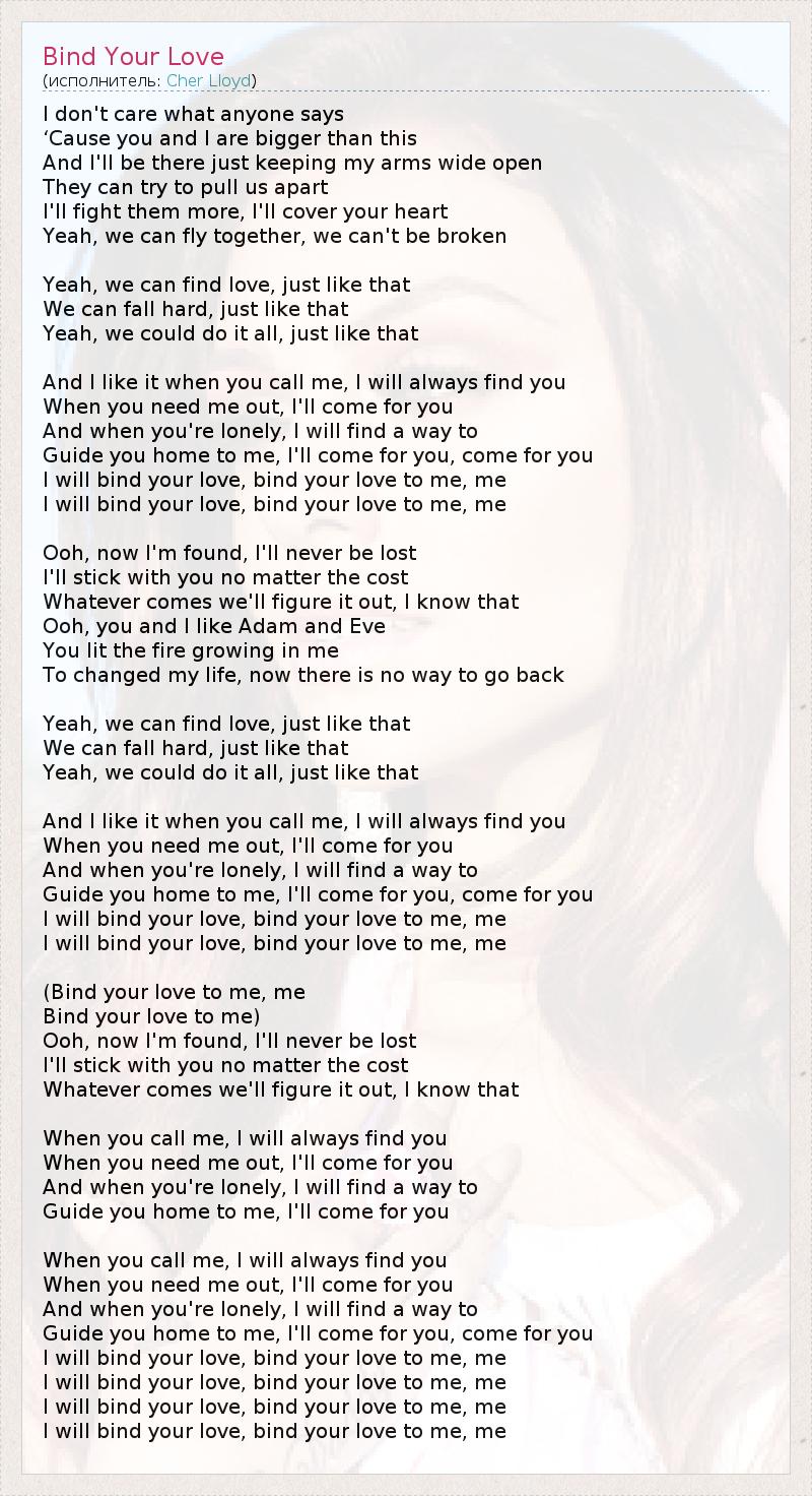 А как ты думаешь, о чем песня "Bind Your Love" ?