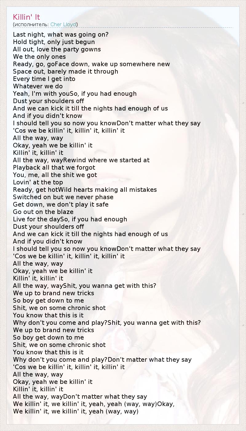 Это интересно:Cher Lloyd английская певица и рэппер из Malvern, Worcestershire, которая получила популярность после участия в шоу X Factor.X-Factor.Cher пробовалась на X-Factor два раза, в свой судьбоносный второй раз она исполнила для судей песню Keri Hilson - Turn My Swag On. Во втором туре она исполнила рэп-версию Viva La Vida группы Coldplay.... продолжение