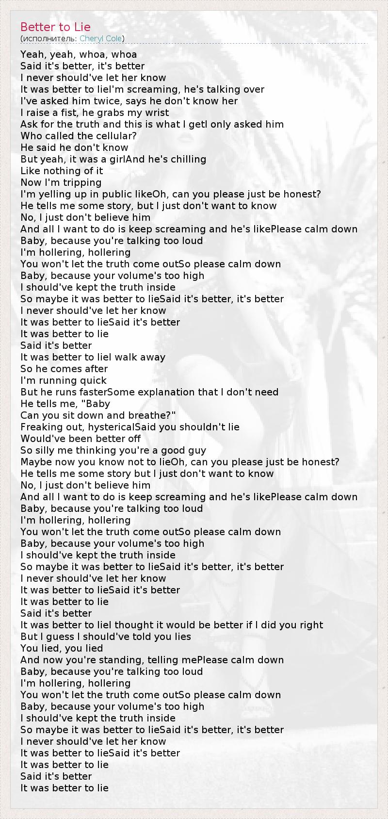 А как ты думаешь, о чем песня "Better to Lie" ?