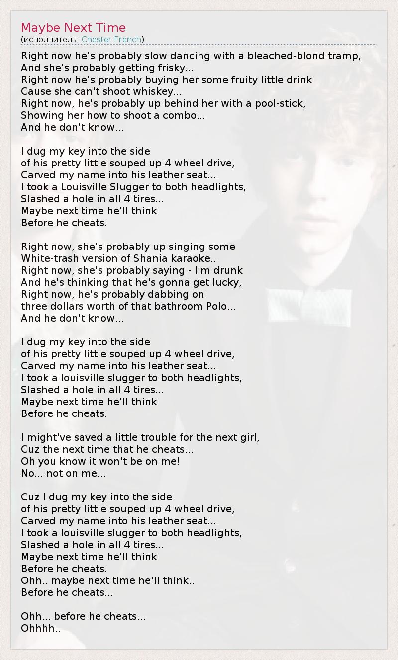 А как ты думаешь, о чем песня "Maybe Next Time" ?