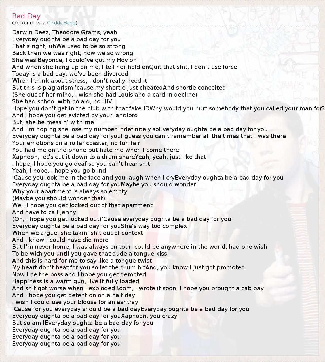 'Cause for you everyday should be a bad dayEveryday oughta be a bad day for you