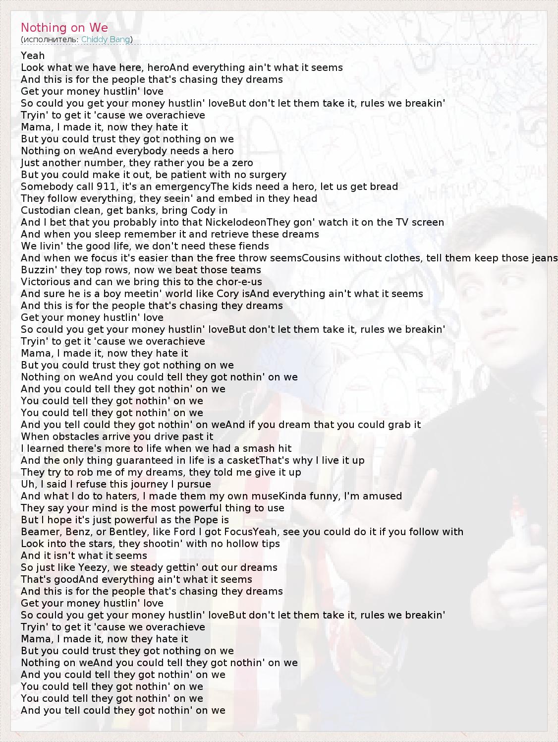 А как ты думаешь, о чем песня "Nothing on We" ?