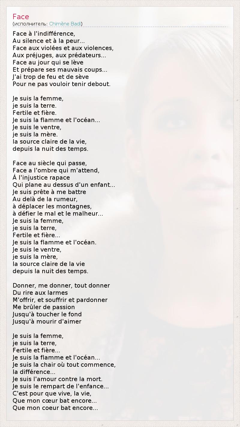 А как ты думаешь, о чем песня "Face" ?