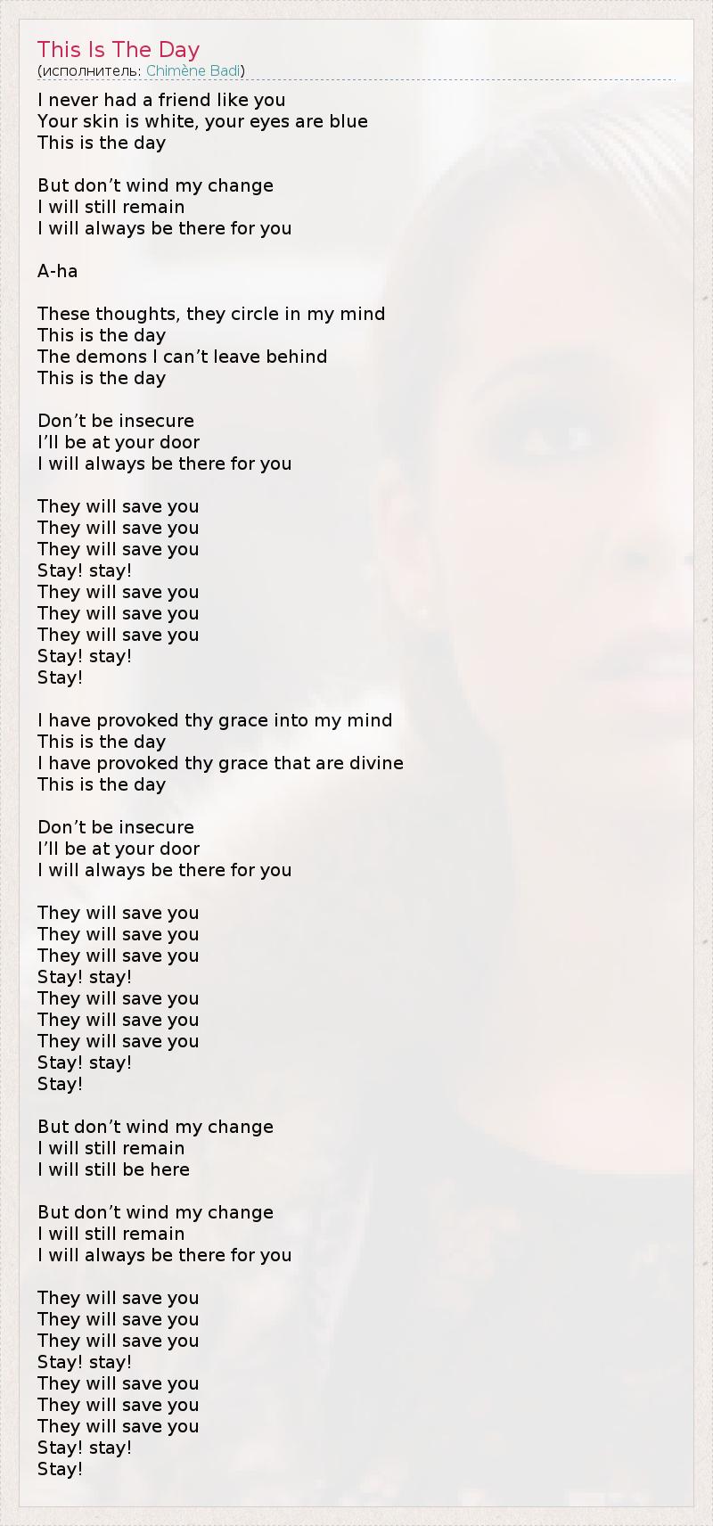 А как ты думаешь, о чем песня "This Is The Day" ?