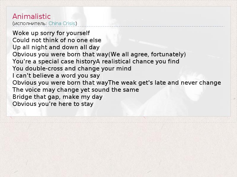 Это интересно:Чуть более оптимистичные, чем большинство их соплеменников по лагерю новых романтиков, China Crisis были вдохновлены теми же источниками, что и остальные, но время от времени добавляли в свои поп-композиции политические комментарии, а также ритмы регги и блюза. Большую часть времени работая дуэтом, состоящим из вокалиста-клавишника Гэри Дэйли и гитариста Эдди Ландона, группа сформировалась... продолжение