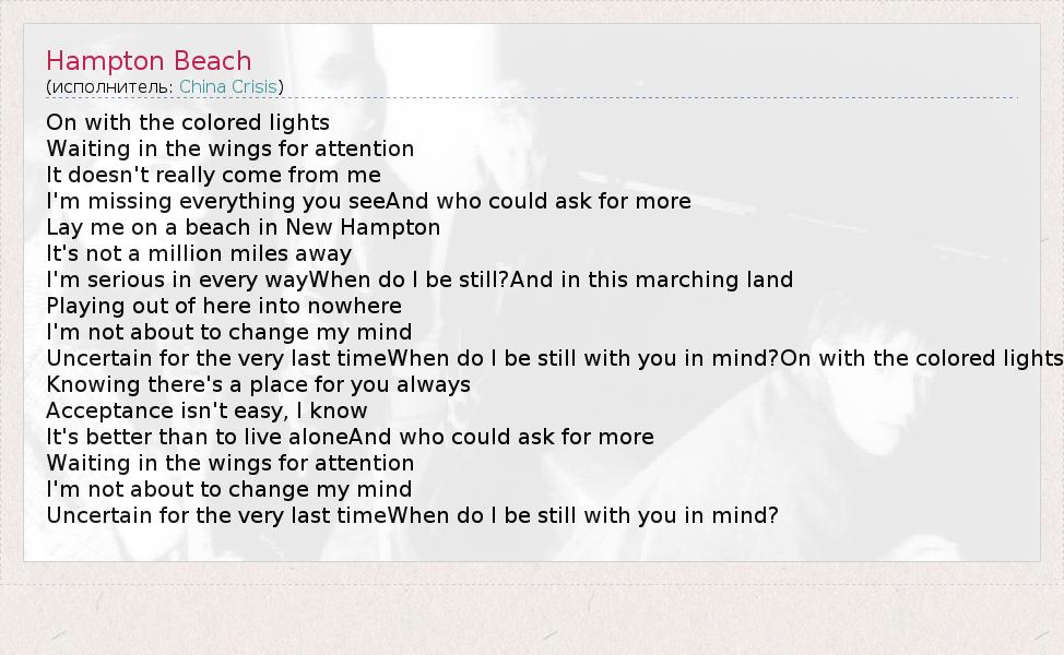 А как ты думаешь, о чем песня "Hampton Beach" ?