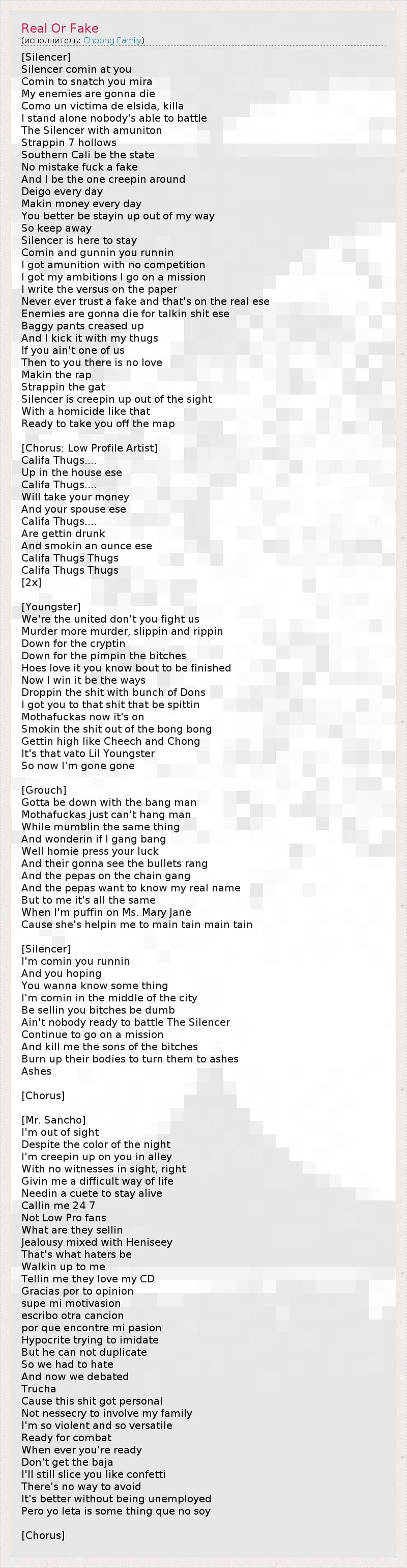 А как ты думаешь, о чем песня "Real Or Fake" ?