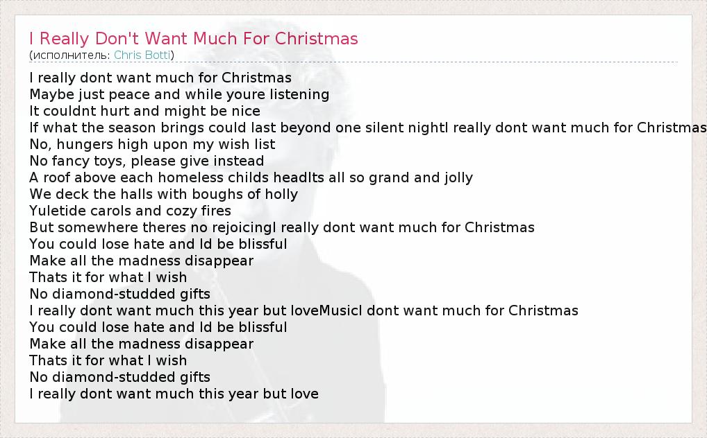 А как ты думаешь, о чем песня "I Really Don't Want Much For Christmas" ?
