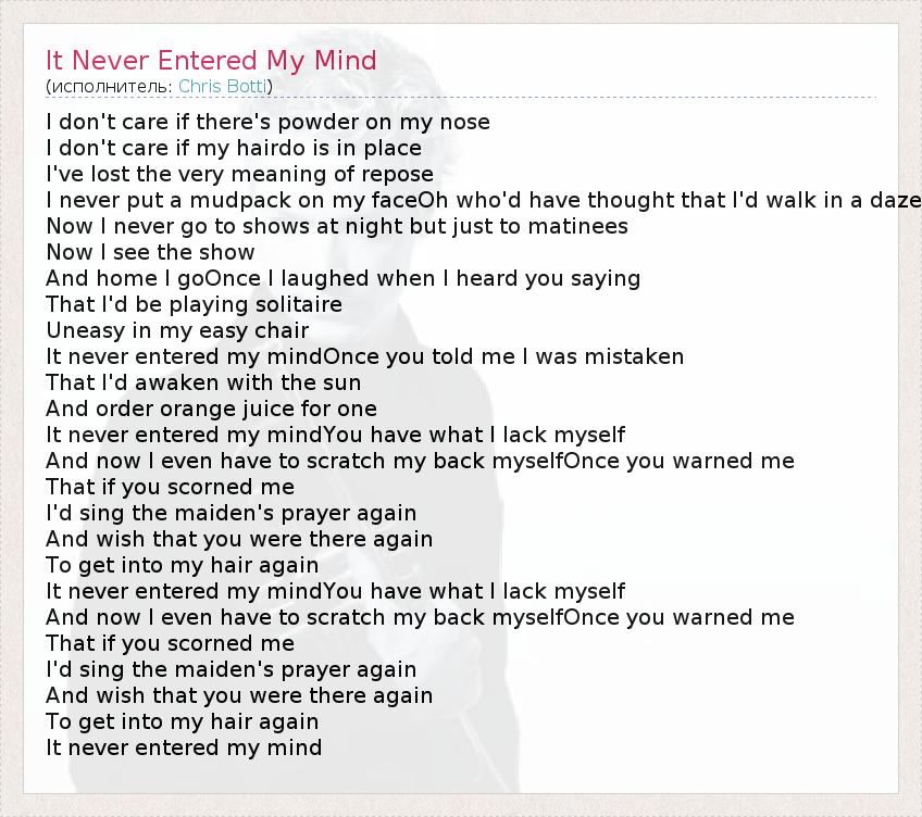 А как ты думаешь, о чем песня "It Never Entered My Mind" ?