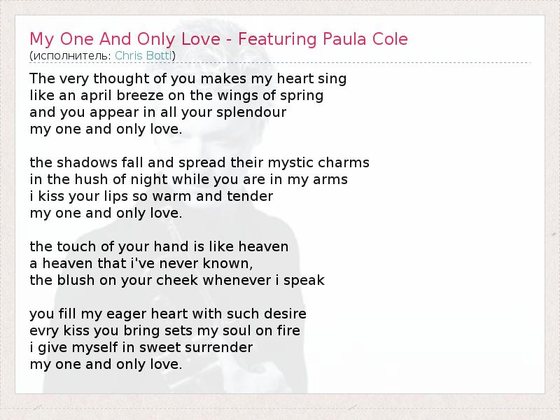 А как ты думаешь, о чем песня "My One And Only Love - Featuring Paula Cole" ?