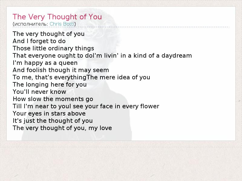 А как ты думаешь, о чем песня "The Very Thought of You" ?
