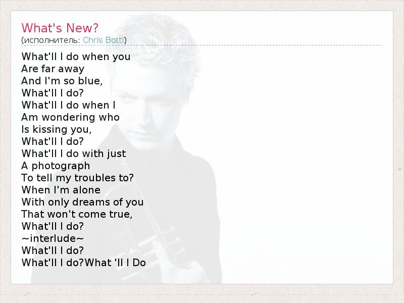 Это интересно:Трубач Крис Ботти ­­— искусный инструменталист, талантливый композитор и харизматичный исполнитель, создавший своеобразный авторский жанр, привлекающий внимание поклонников как современного джаза, так и популярной музыки. Благодаря фирменной утонченной атмосфере и вдумчивой импровизации, Ботти достиг успеха у критиков и слушателей со своими работами, наиболее успешными... продолжение