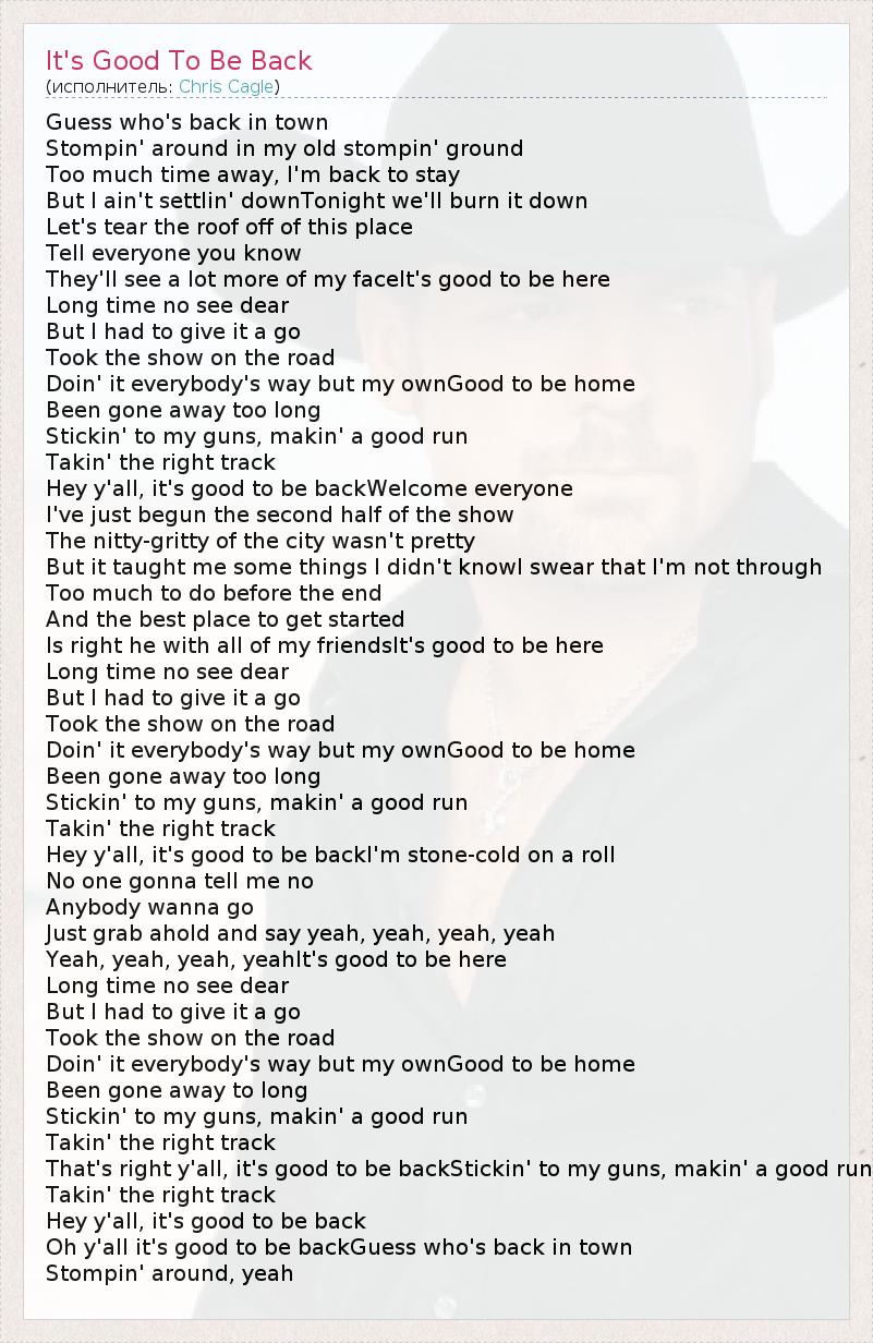 А как ты думаешь, о чем песня "It's Good To Be Back" ?