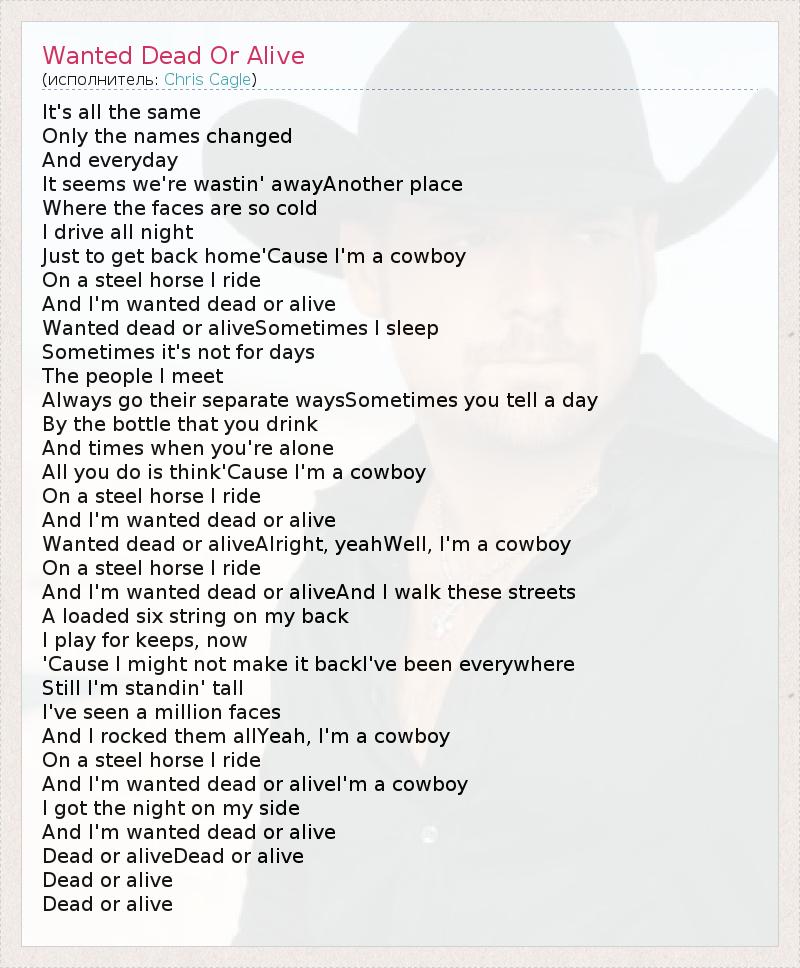 Wanted dead or aliveAlright, yeahWell, I'm a cowboy