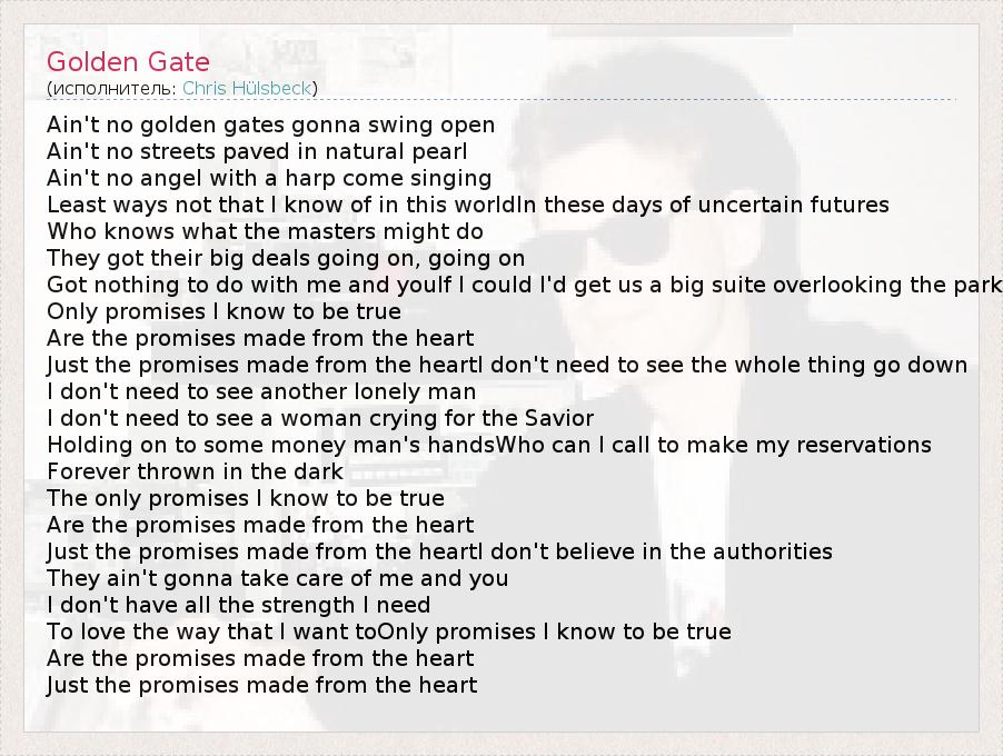 А как ты думаешь, о чем песня "Golden Gate" ?