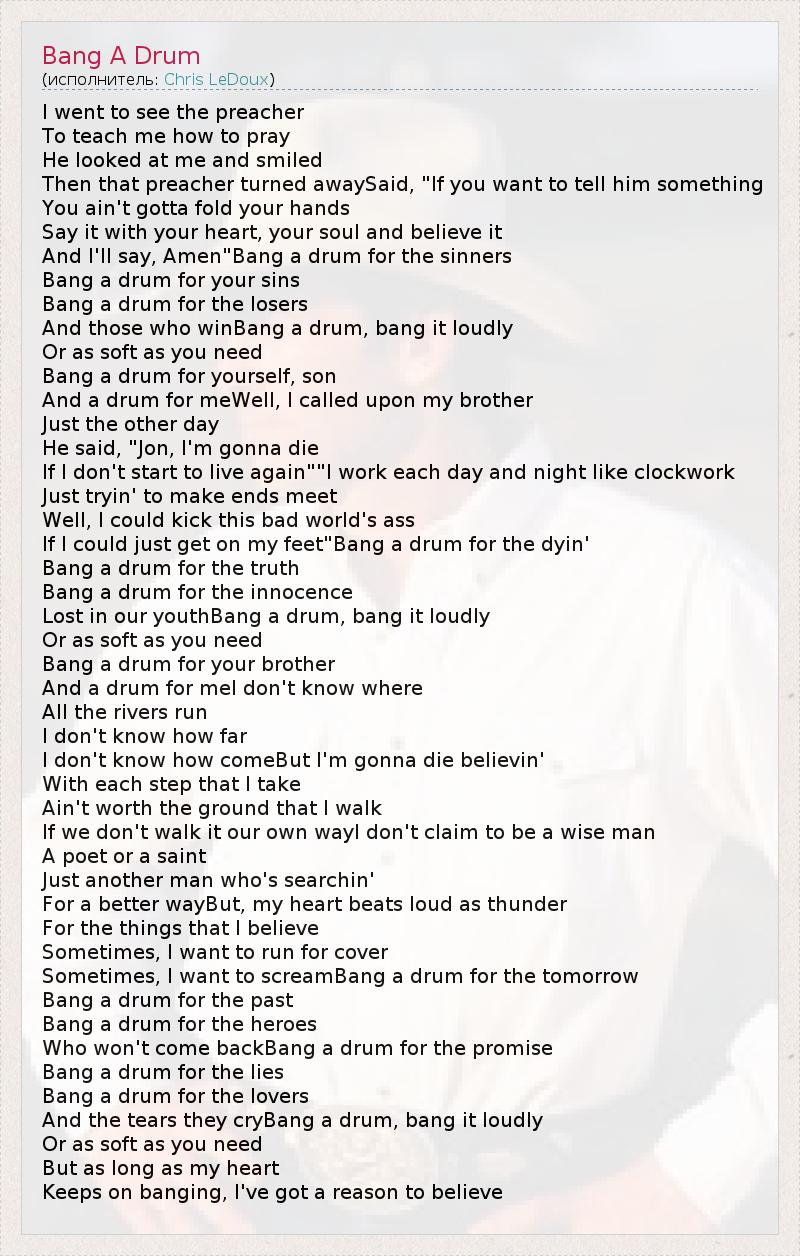 А как ты думаешь, о чем песня "Bang A Drum" ?