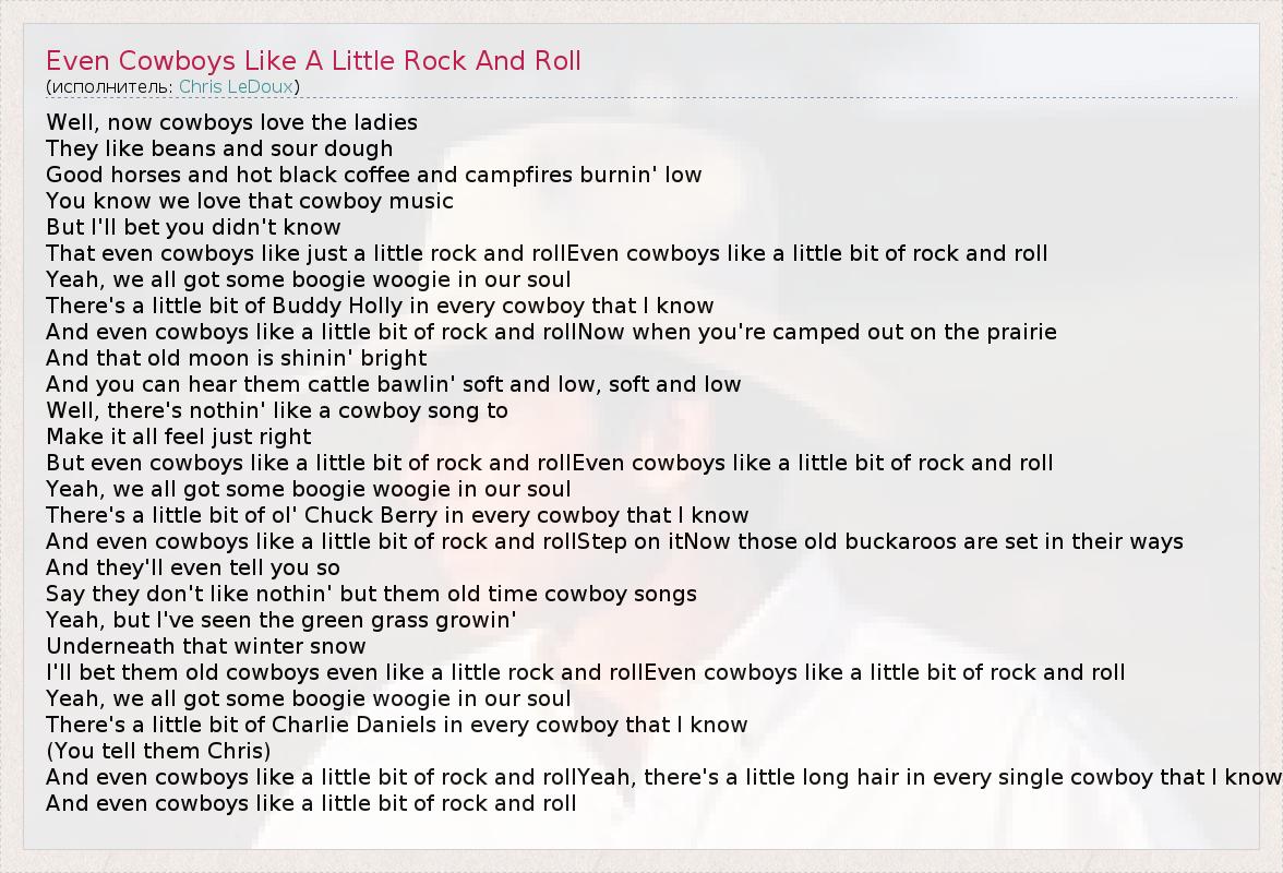 ГлавнаяИсполнителиChris LeDouxEven Cowboys Like A Little Rock And Roll