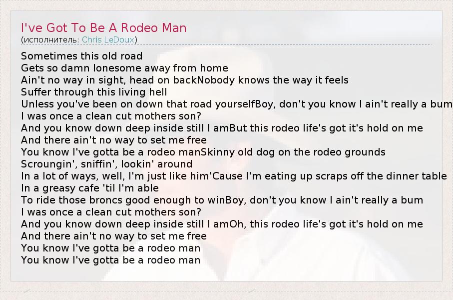 А как ты думаешь, о чем песня "I've Got To Be A Rodeo Man" ?