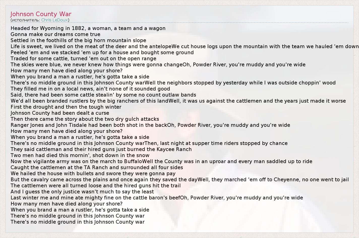 А как ты думаешь, о чем песня "Johnson County War" ?