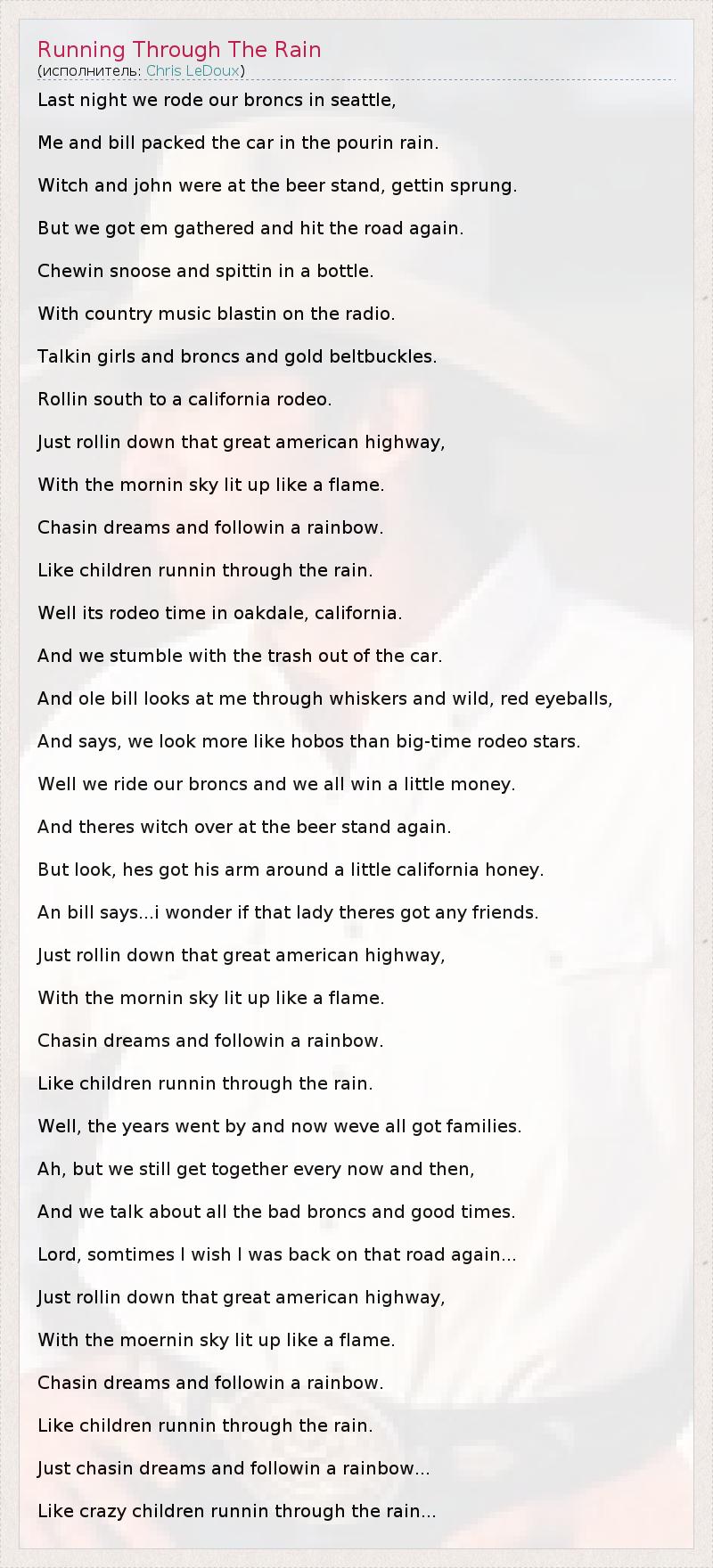 А как ты думаешь, о чем песня "Running Through The Rain" ?