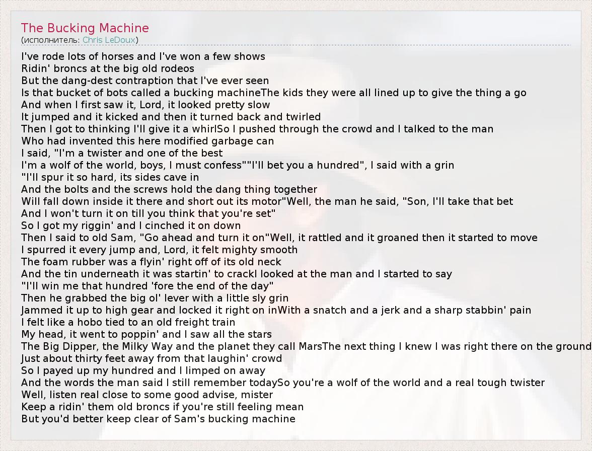 А как ты думаешь, о чем песня "The Bucking Machine" ?