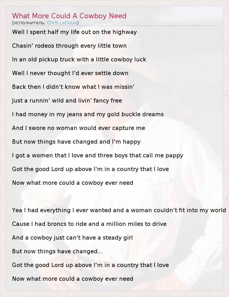 А как ты думаешь, о чем песня "What More Could A Cowboy Need" ?