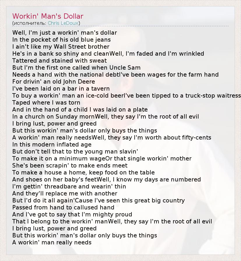 А как ты думаешь, о чем песня "Workin' Man's Dollar" ?