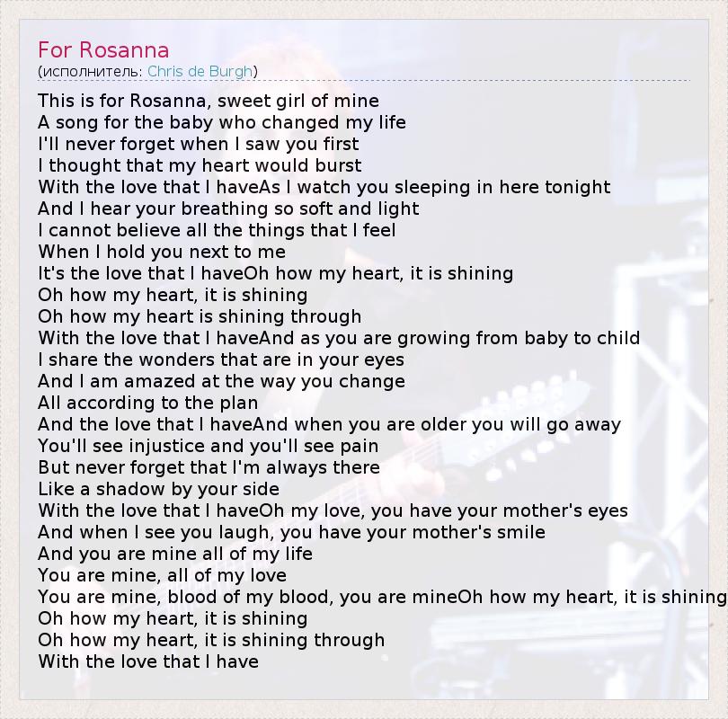 А как ты думаешь, о чем песня "For Rosanna" ?