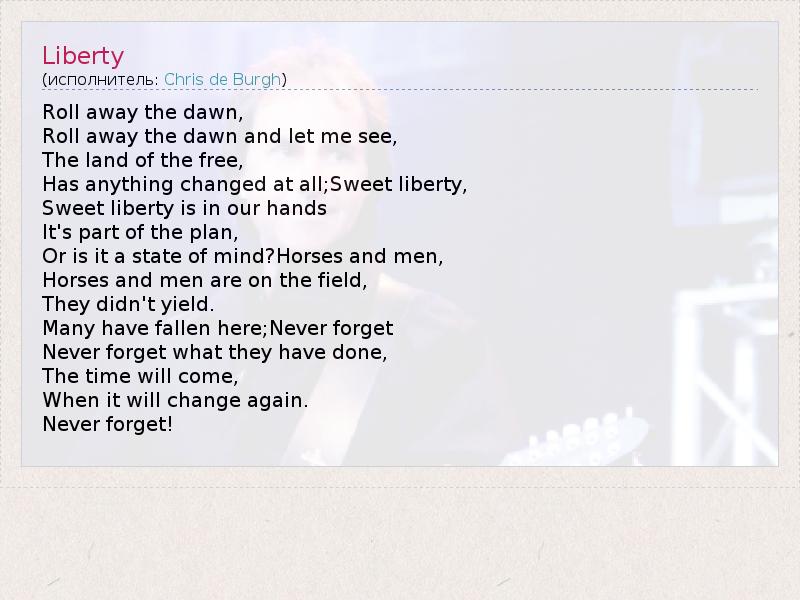 А как ты думаешь, о чем песня "Liberty" ?