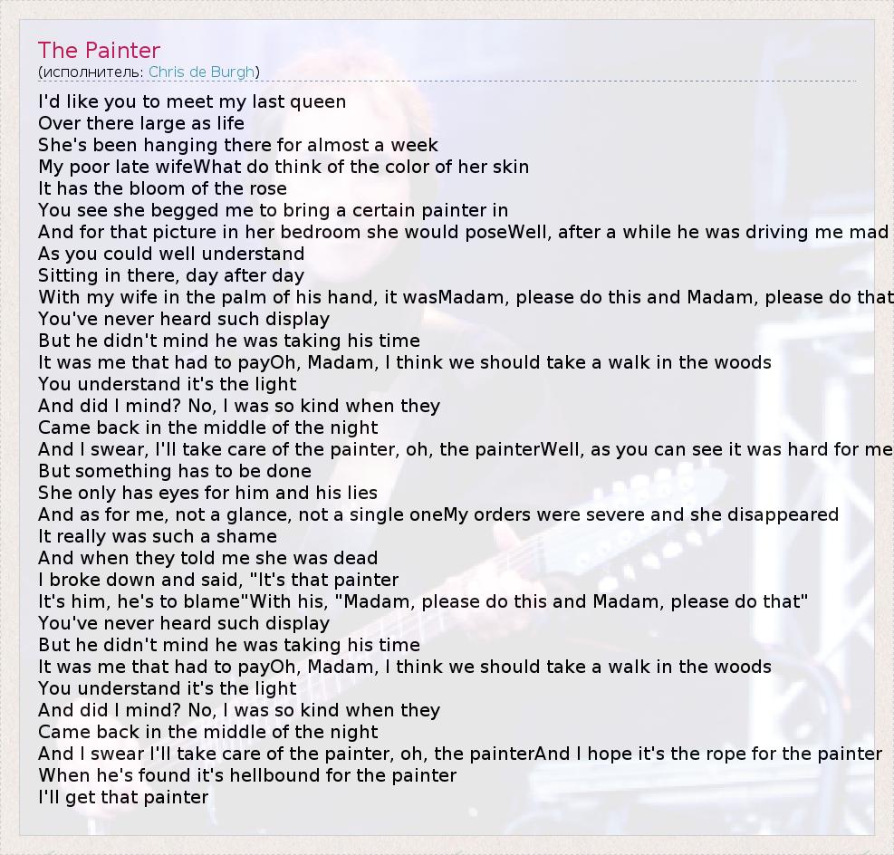 А как ты думаешь, о чем песня "The Painter" ?