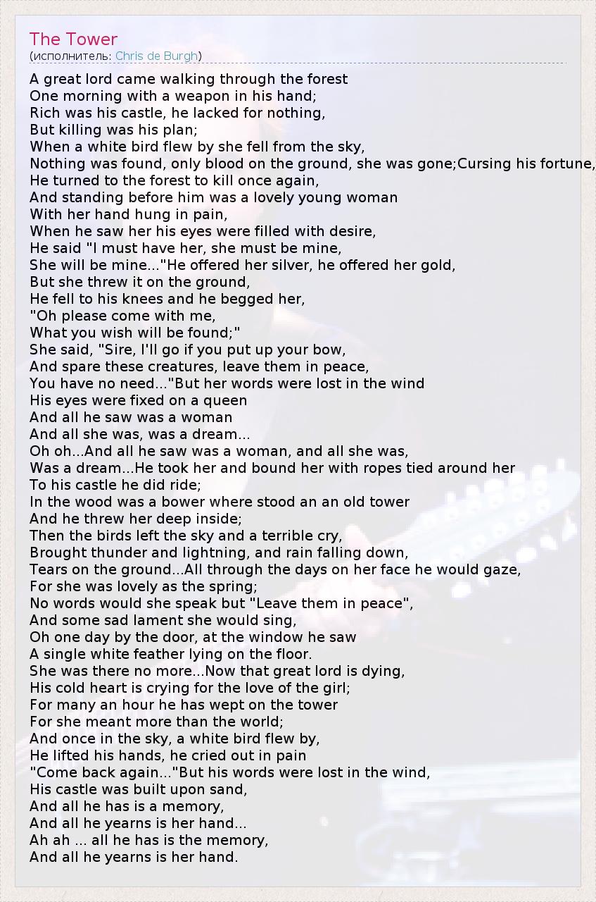 А как ты думаешь, о чем песня "The Tower" ?