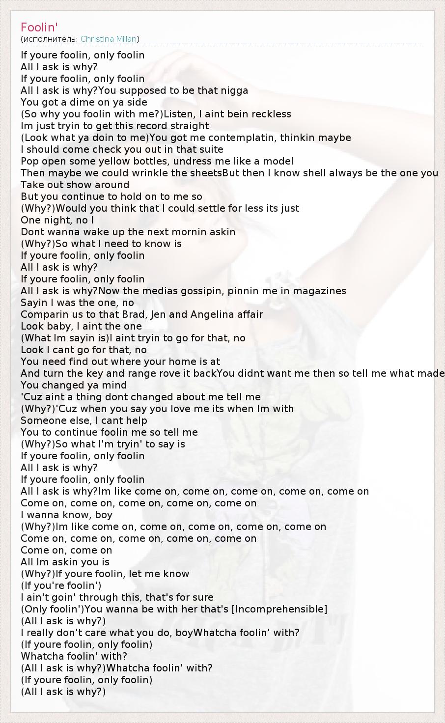 Это интересно:Певица и актриса Christina Milian родилась в Нью-Джерси 26 сентября 1981 года. Но выросла в Мэриленде, в семье кубинцев. С четырёх лет она мечтала об успехе: «Я помню, как ребёнком смотрела TV и хотела туда попасть. Вот такое сильное желание было стать звездой».В 2001 году дебютная песня Кристины Милиан (Christina Milian) "AM To PM" стремительно ворвалась в мировые хит-парады. Как выяснилось, этот успех оказался... продолжение
