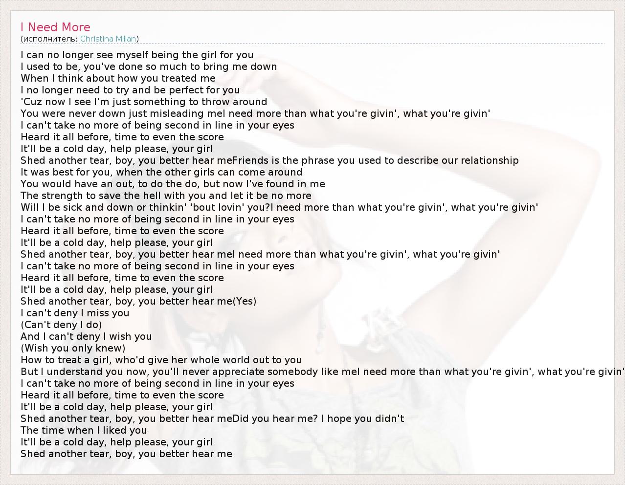 Shed another tear, boy, you better hear meI need more than what you're givin', what you're givin'