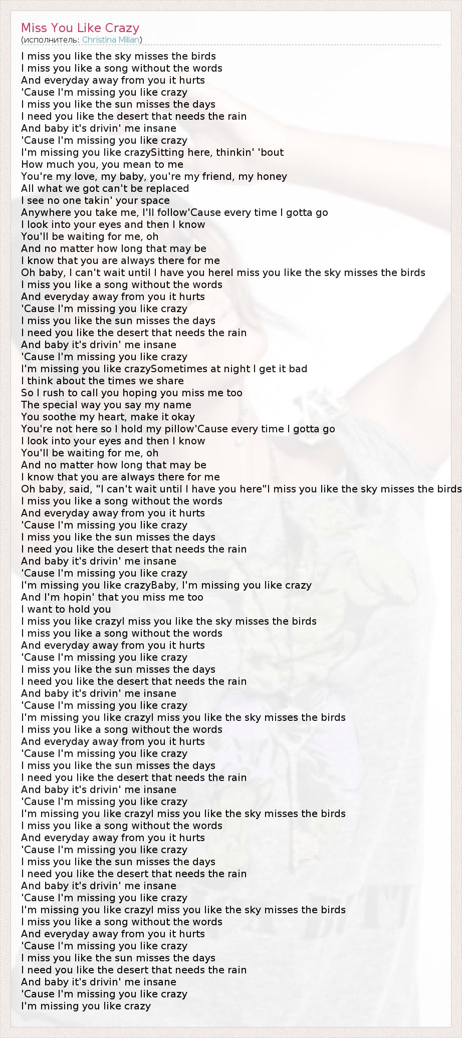 А как ты думаешь, о чем песня "Miss You Like Crazy" ?
