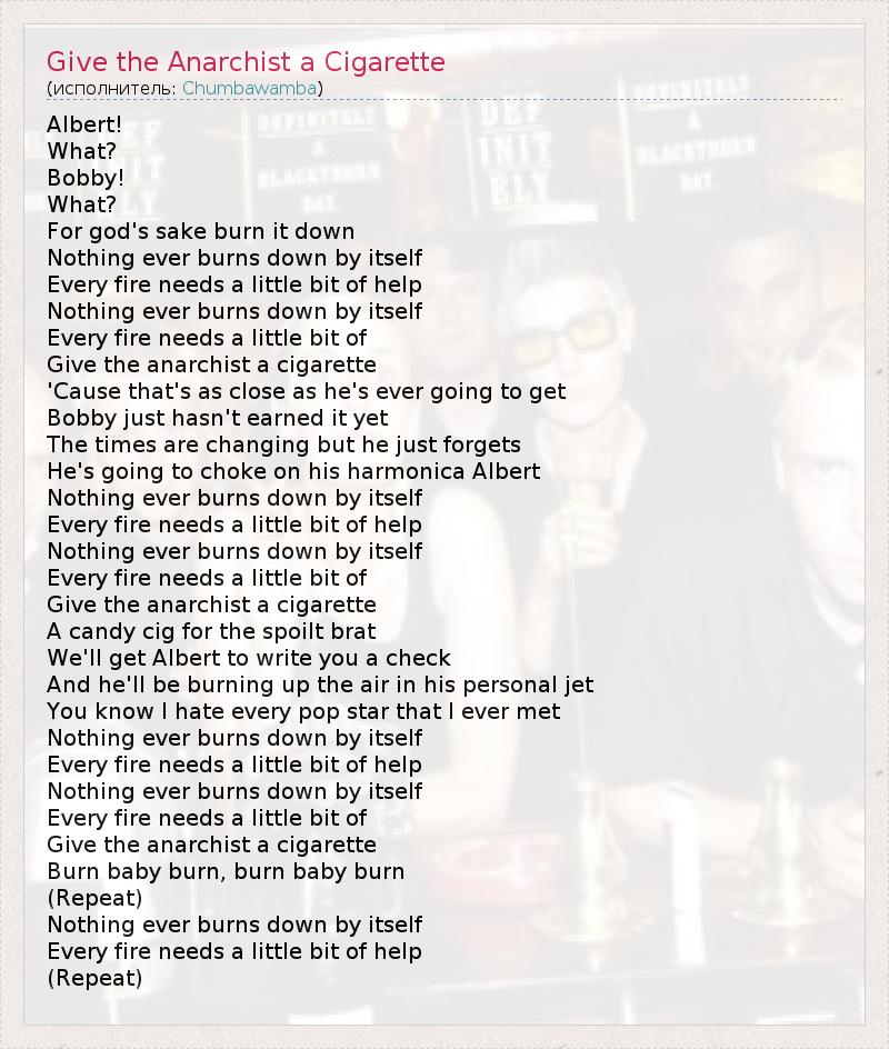 А как ты думаешь, о чем песня "Give the Anarchist a Cigarette" ?