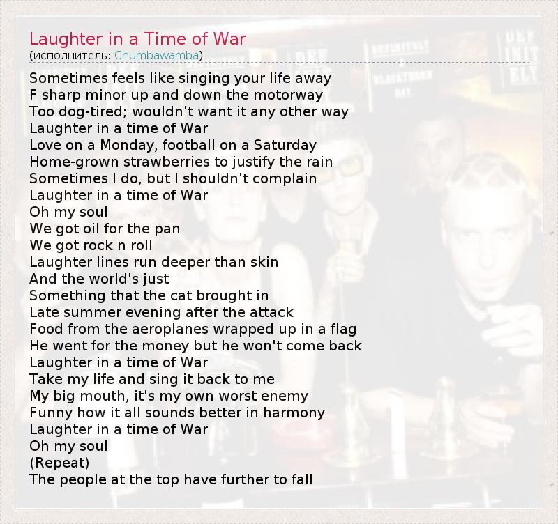 А как ты думаешь, о чем песня "Laughter in a Time of War" ?