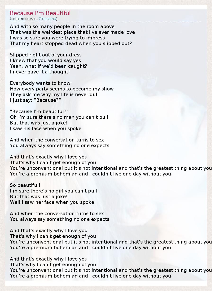 А как ты думаешь, о чем песня "Because I'm Beautiful" ?