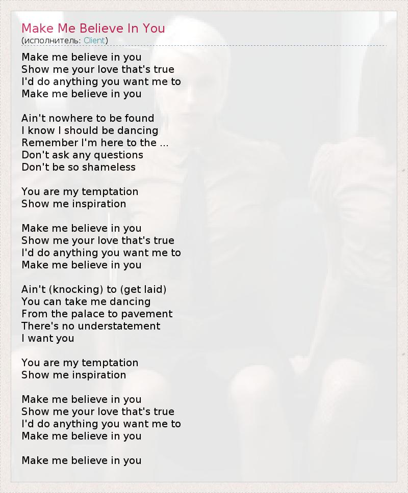 А как ты думаешь, о чем песня "Make Me Believe In You" ?