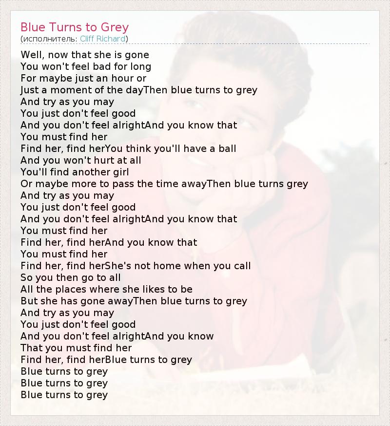 А как ты думаешь, о чем песня "Blue Turns to Grey" ?