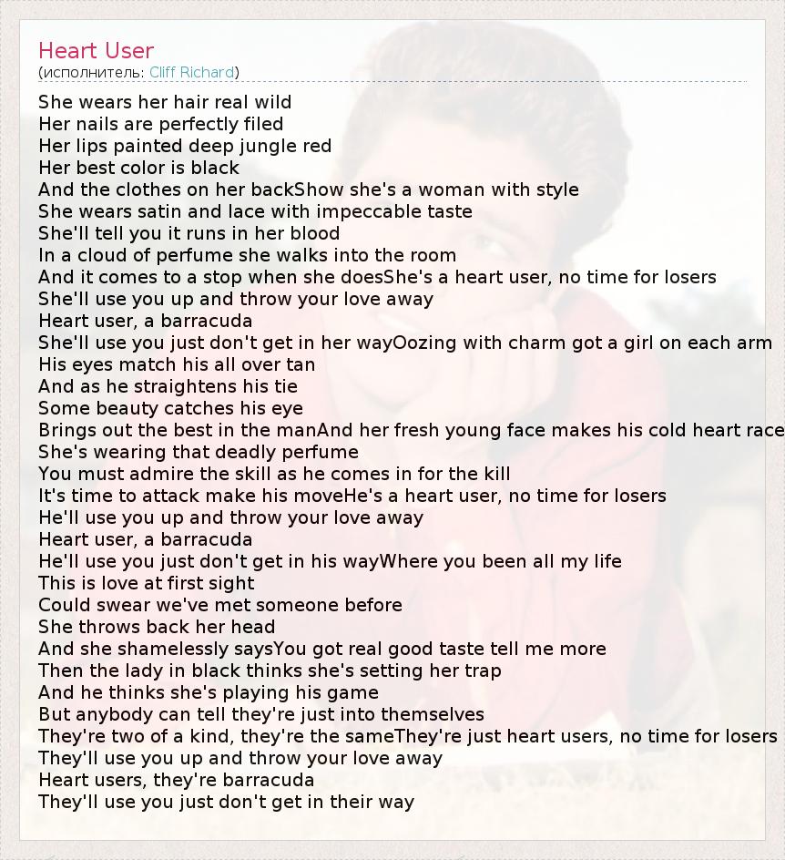 They're two of a kind, they're the sameThey're just heart users, no time for losers