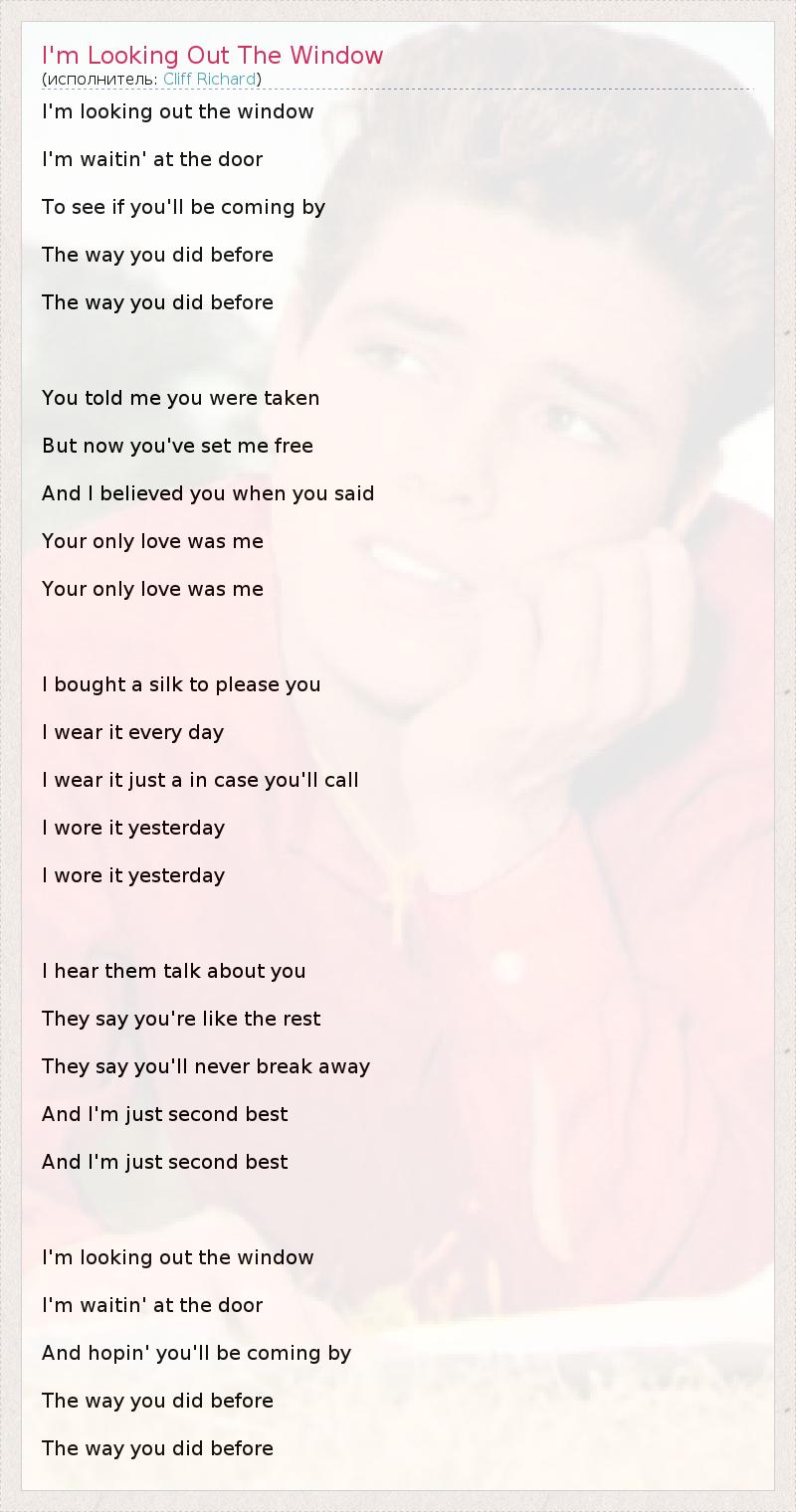 ГлавнаяИсполнителиCliff RichardI'm Looking Out The Window