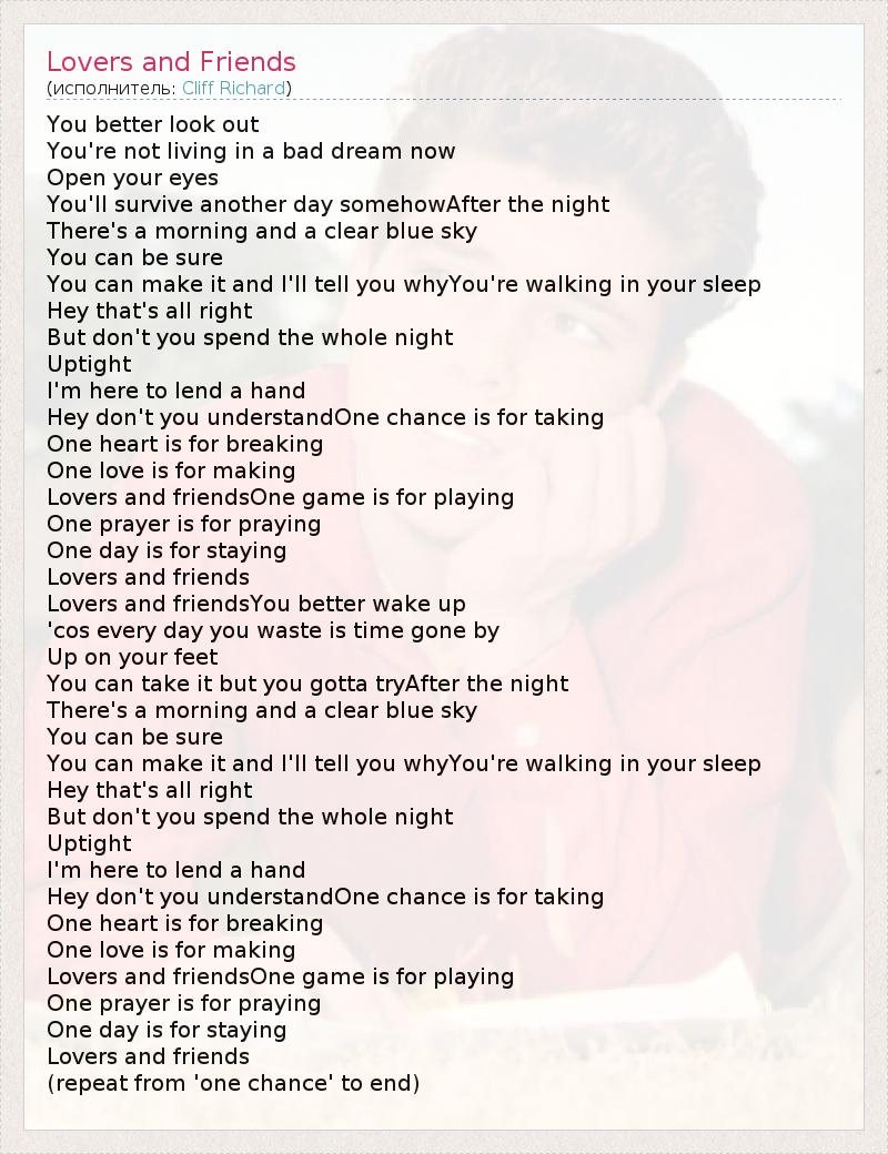 А как ты думаешь, о чем песня "Lovers and Friends" ?